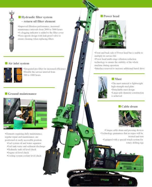 Буровая установка Tysim KR360C с цилиндрической системой подачи.